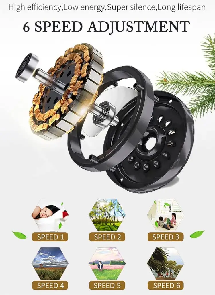 Adjustable Wind Speed: 6 gears with forward/reverse rotation.